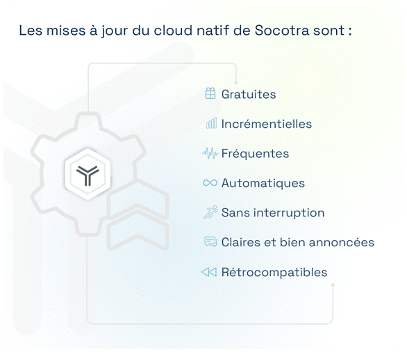 Quel que soit votre choix, vous bénéficierez de toutes les fonctionnalités offertes par Socotra, mises à jour en permanence pour vous permettre de rester à la page.
